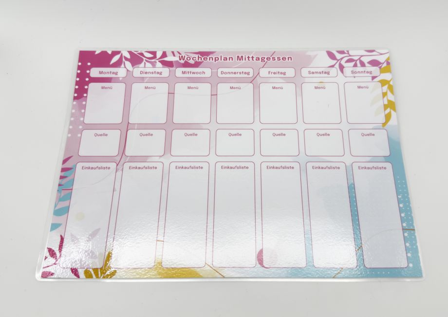 Dieser farbenfrohe DIN-A4-Wochenplaner fürs Mittagessen bringt Struktur in deine Woche, ganz ohne App, dafür mit Stil. Die laminiert abwischbare Oberfläche ist ideal für wechselnde Pläne und spontane Änderungen. Ob für die Familie, fürs Büro oder einfach zur Selbstorganisation: Praktisch, wiederverwendbar und mit Liebe gestaltet.